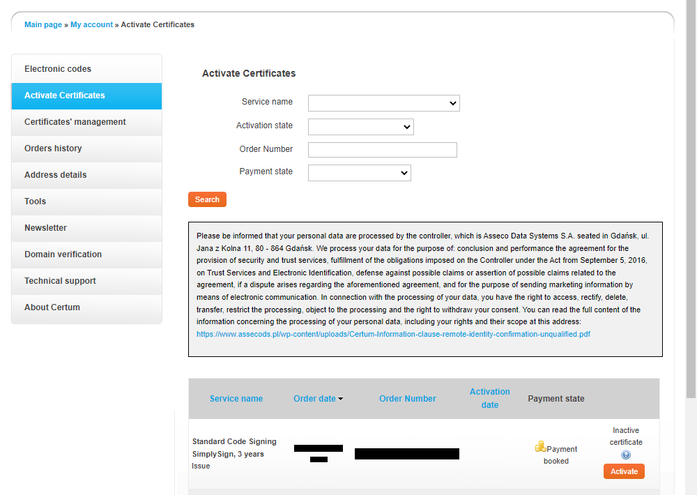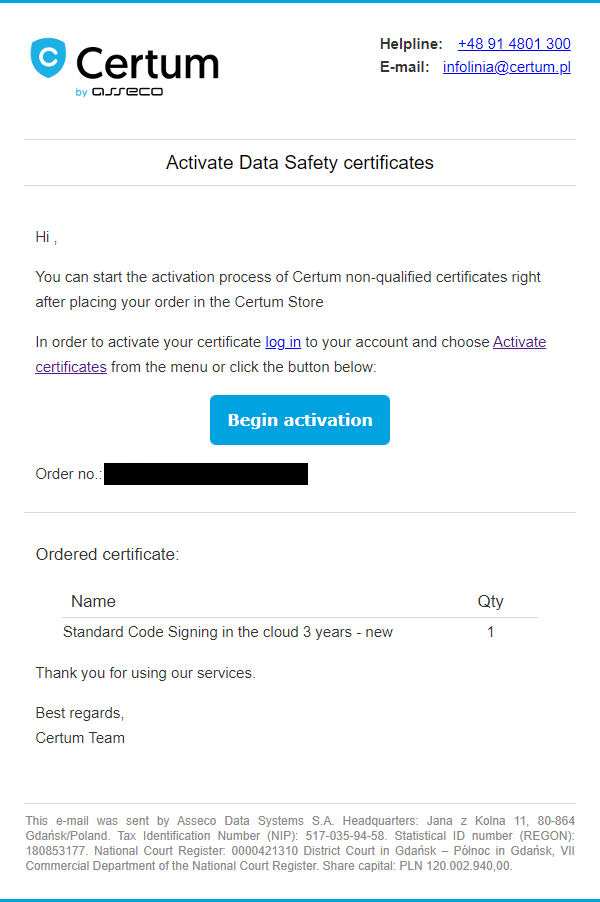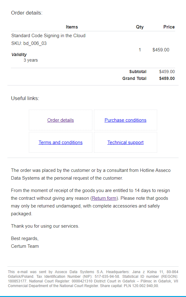| From | Certum Store <infolinia@certum.pl> |