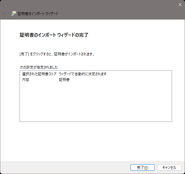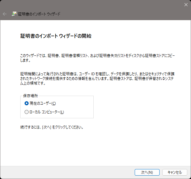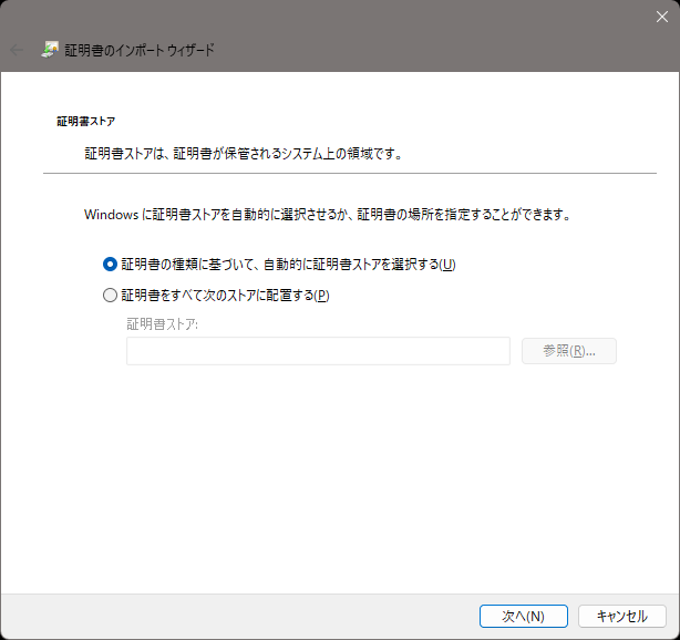 [証明書の種類に基づいて、自動的に証明書ストアを選択する]ラジオボタンが