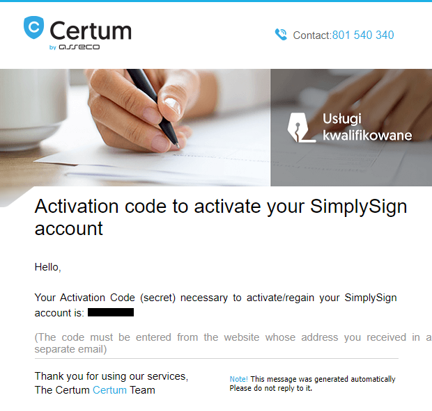 | Subject | Activation code to activate/regain your SimplySign account |