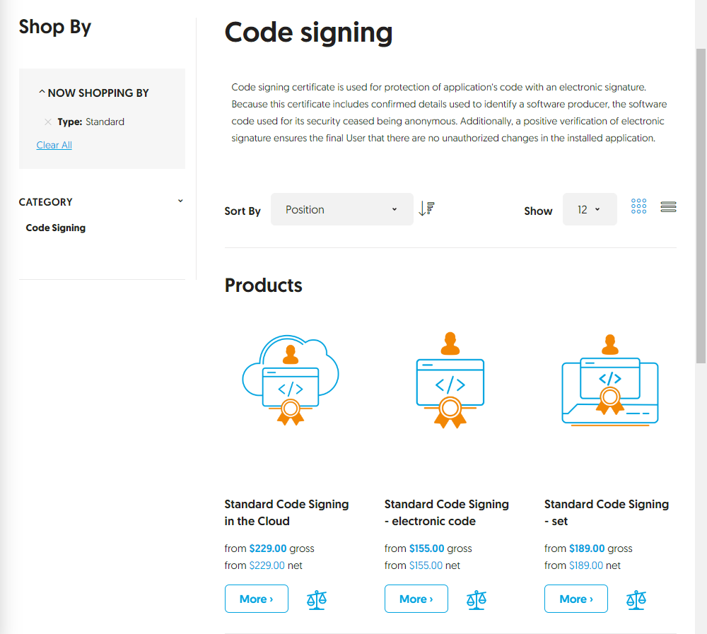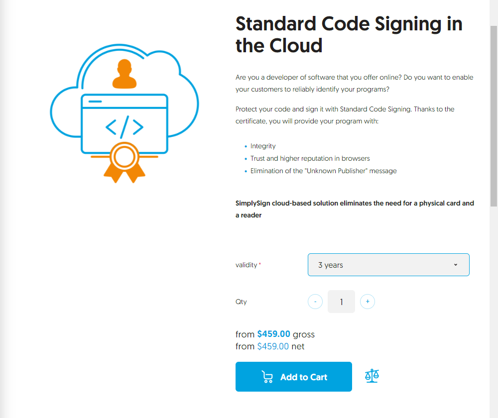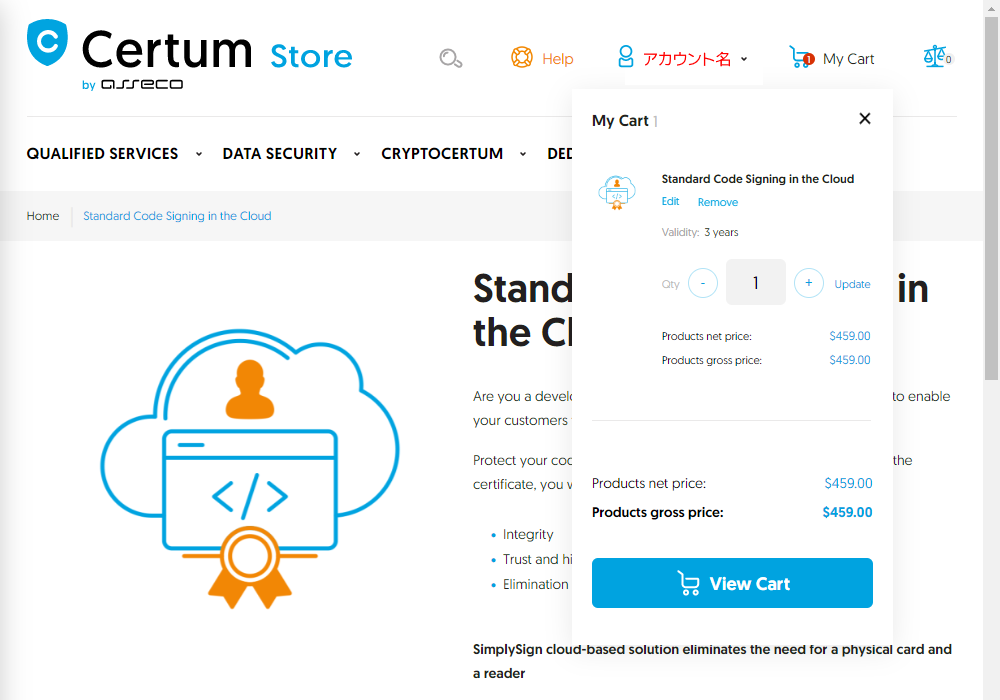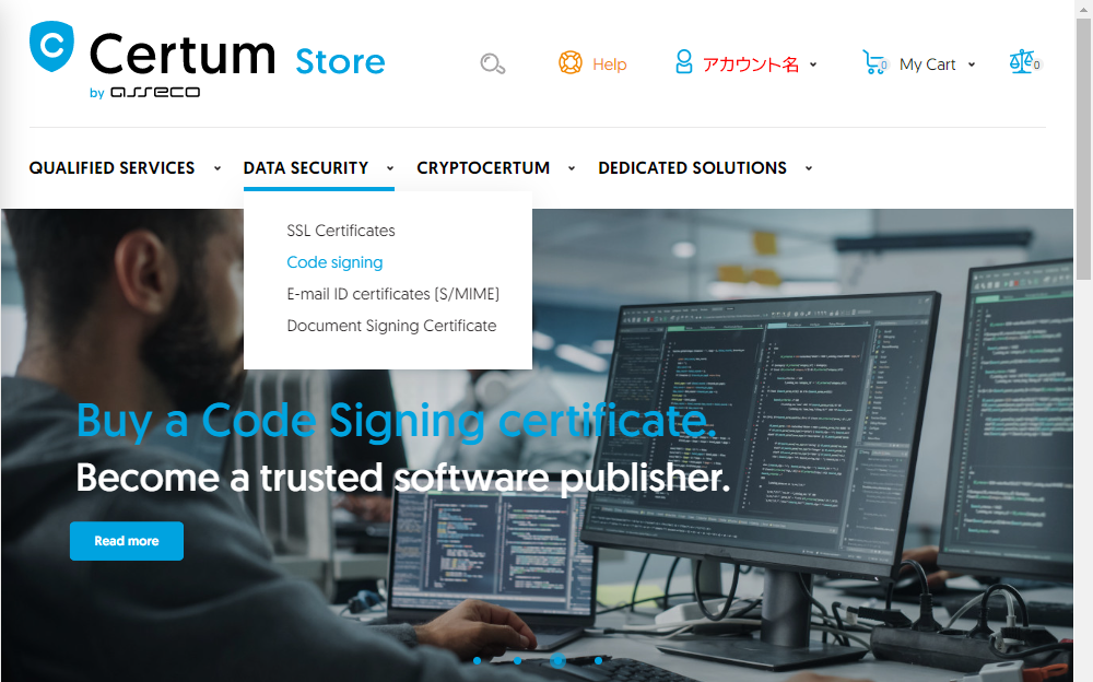 https://certum.store/ に接続します。