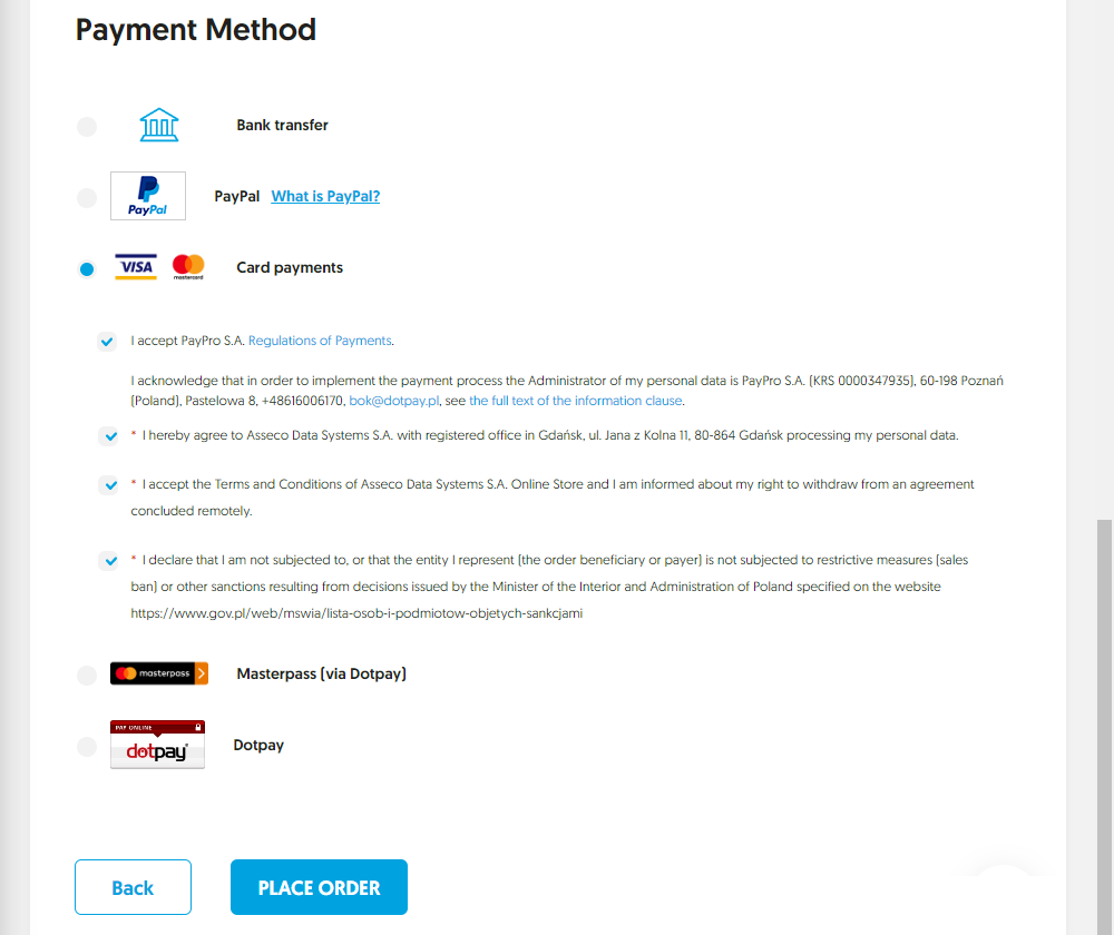 [Card payments]ラジオボタンを選択しました。
