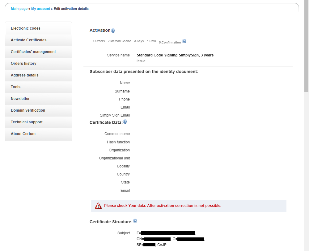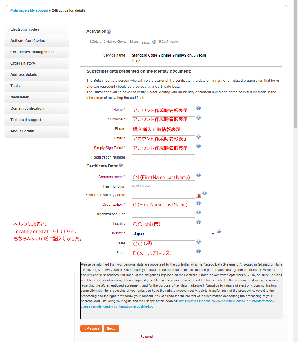 ちなみに、Certumは、ポーランドの会社ですので、 タイムゾーンは、UTC+01:00 営業時間は、7時から16時までとなり、 日本の時間だと、15時から24時までになります。 作業を行う際には、上記の時間を考慮した方が、 作業が中断せずに済むかもしれません。 私の場合、メールで問い合わせを行った際には、 19時から21時の返信が多かったです。 |