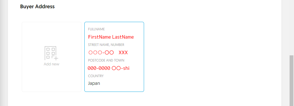[Buyer Address] - [Add new]ボタンを押します。
