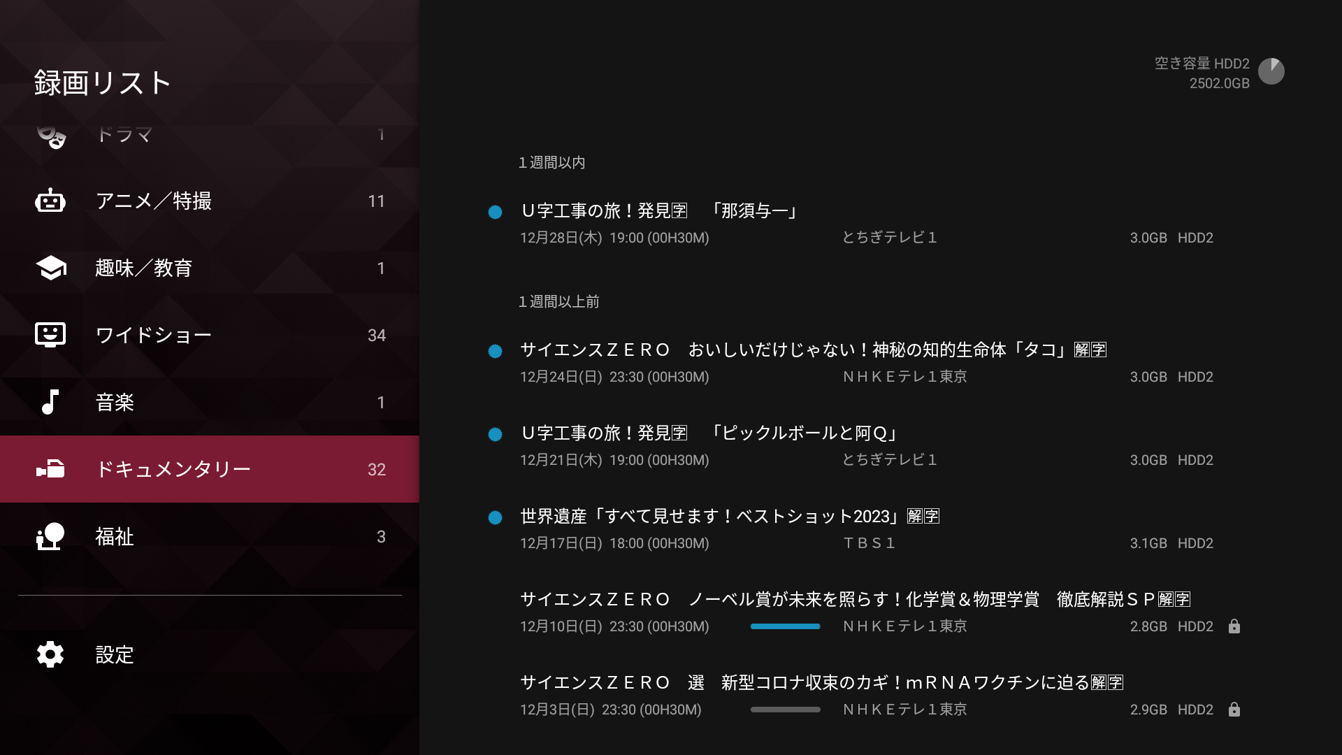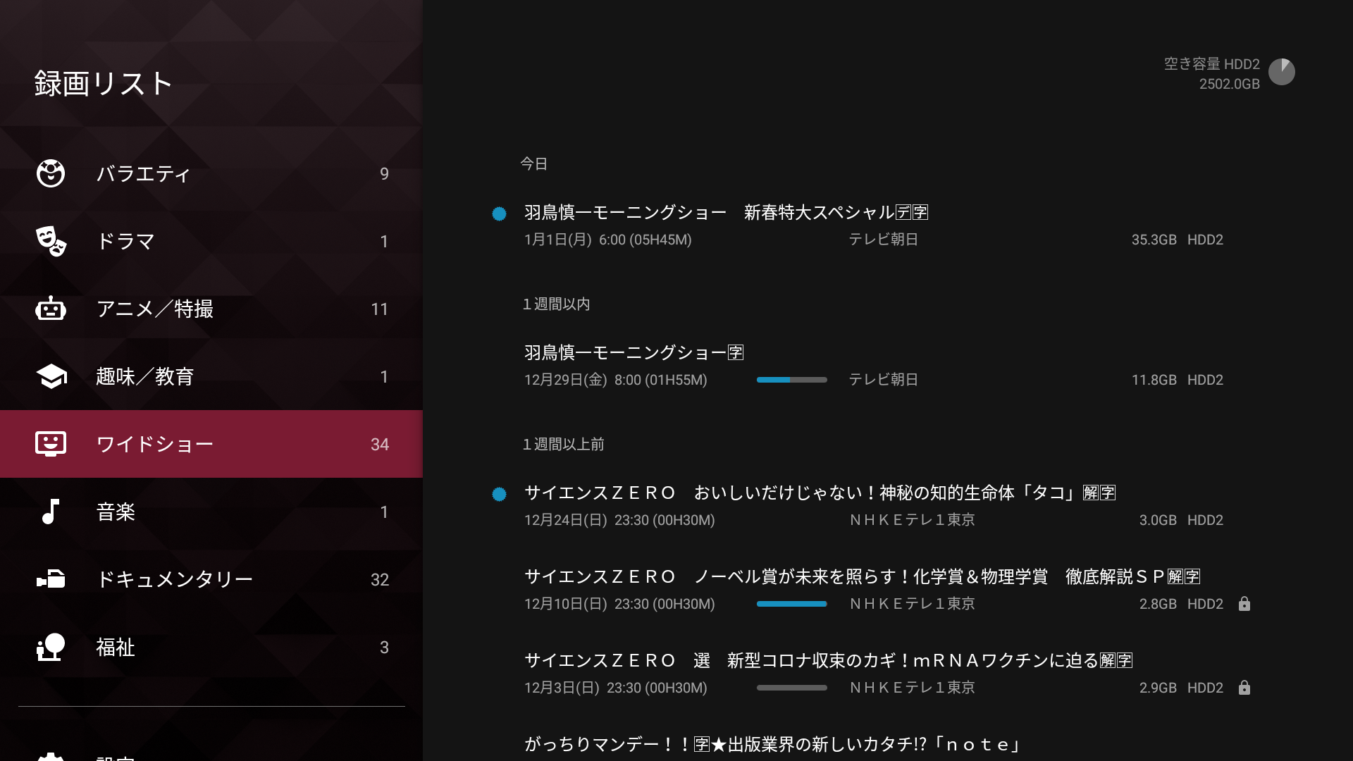 BRAVIA (ブラビア) に接続している外付けHDDに録画しているデータなんですが、