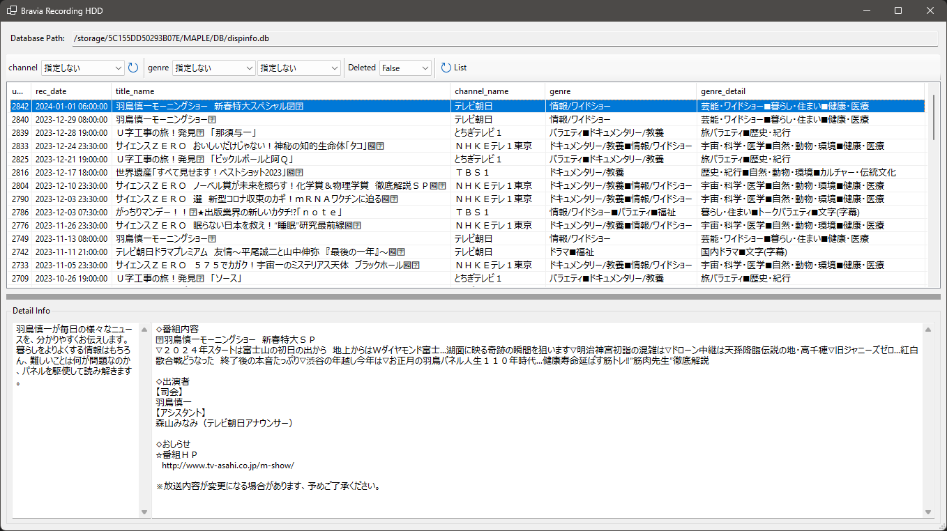 2.録画を管理しているDBを解析