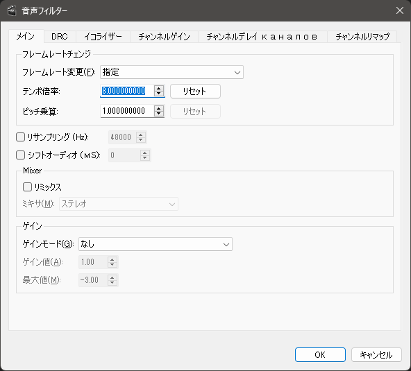 [テンポ倍率]を映像の倍率と同じに設定し、[OK]ボタンを押します。