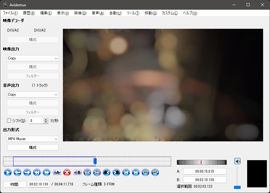 ここでは、15.015秒から2分18.138秒までを選択しています。
