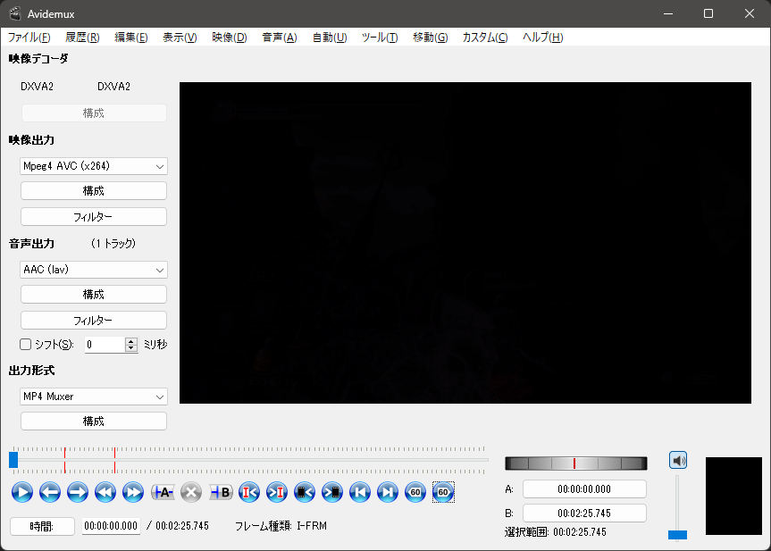 念のため、Avidemuxを再起動します。(先ほどの設定が残らないように)