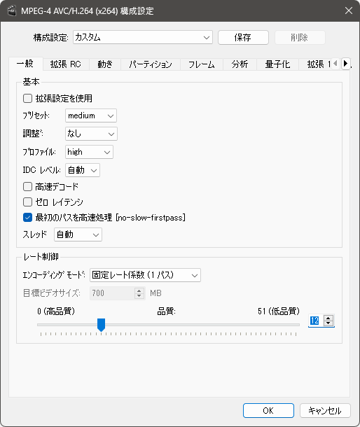 ここでは、[映像出力]に[Mpen4 AVC (x264)]を選択し
