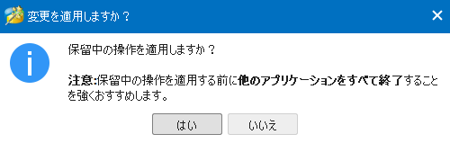 7.下図のようなダイアログが表示されるので、[はい]をクリックして、実行します。