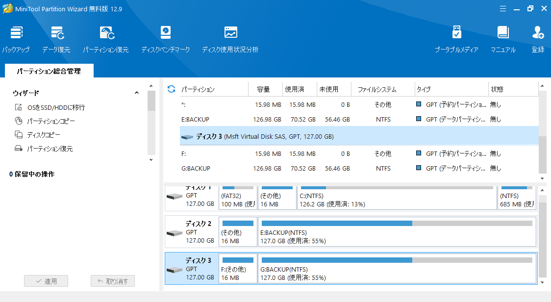MiniTool Partition Wizard 無料版 を使用してみました。
