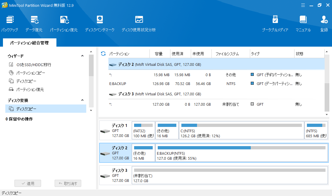 A.メインの画面に戻ると、コピーしたディスクのパーティションには、