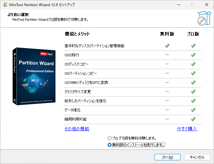 [MiniTool Partition Wizard Free]のチェックは外せません