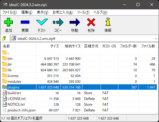 ダウンロードしたファイルを7zで開いたら、"plugins"フォルダを開きます。