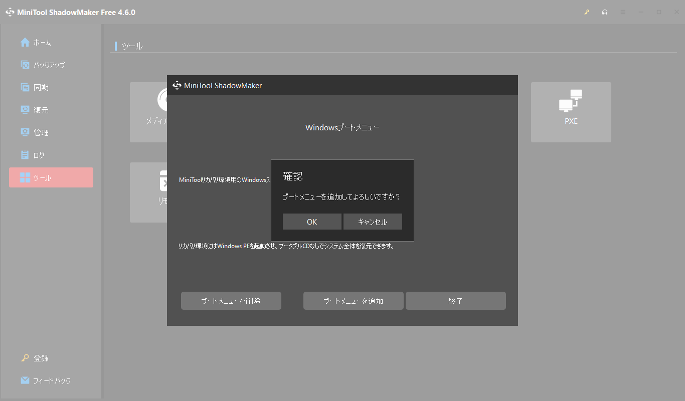 3.さらに、[ブートメニューを追加]ボタンをクリックします。
