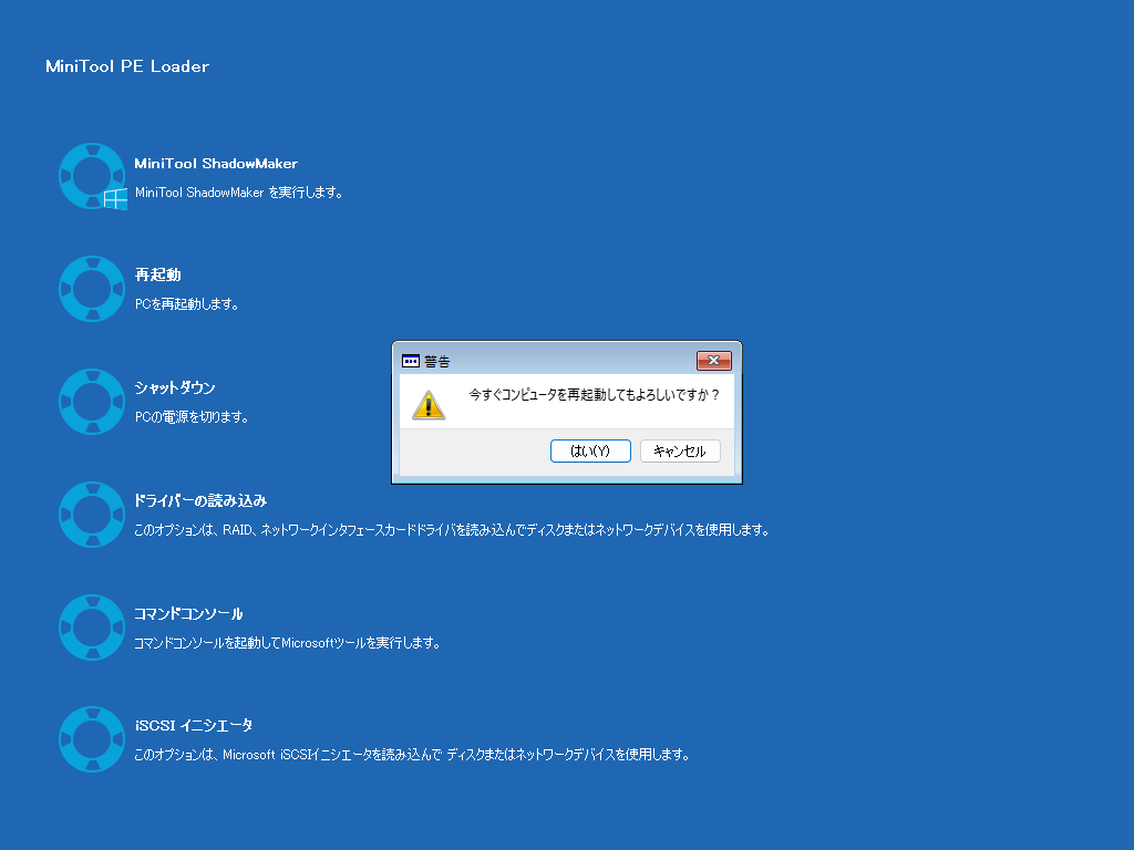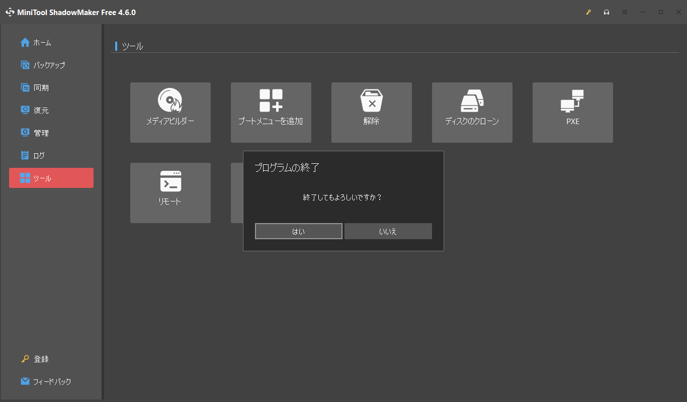 7.[終了]ボタンをクリックすると、確認ダイアログが表示されるので、[はい]ボタンをクリックします。