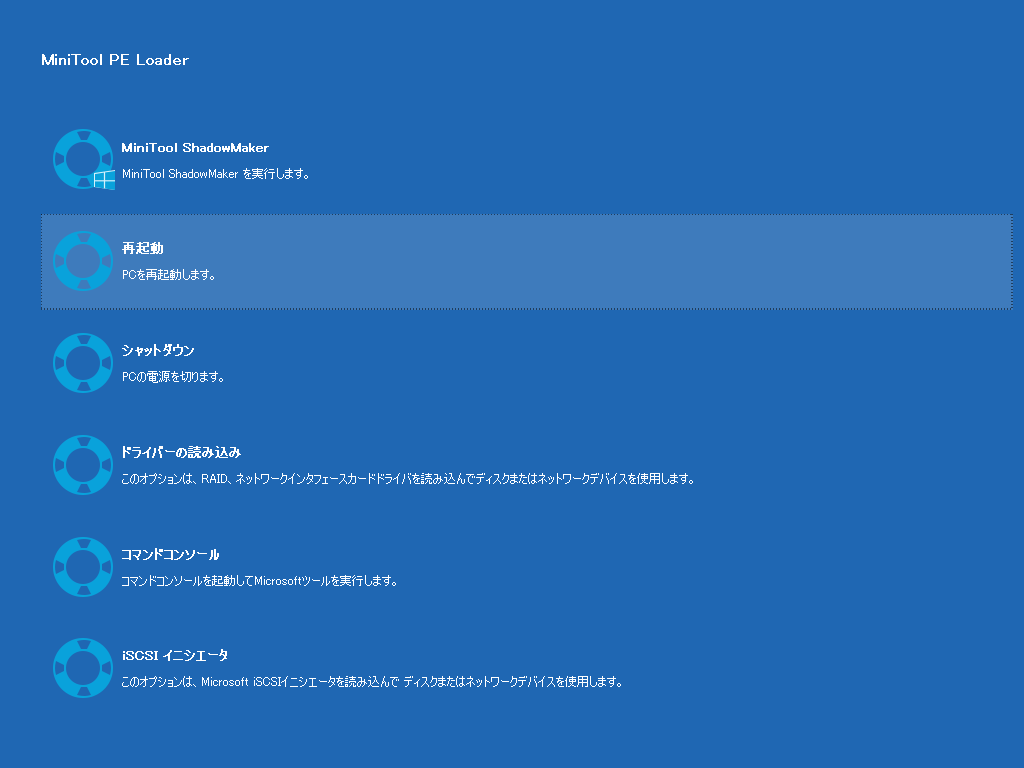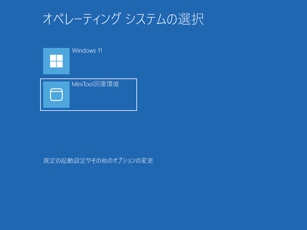 再起動すると、ブートメニューに[MiniTool回復環境]が表示されるので、選択します。