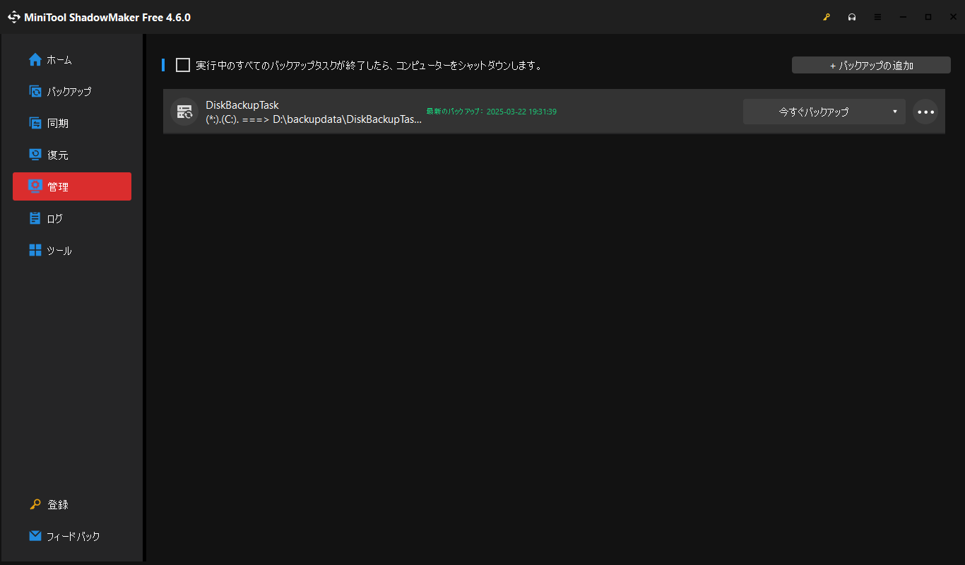 MiniTool ShadowMaker 無料版 を使用してみました。