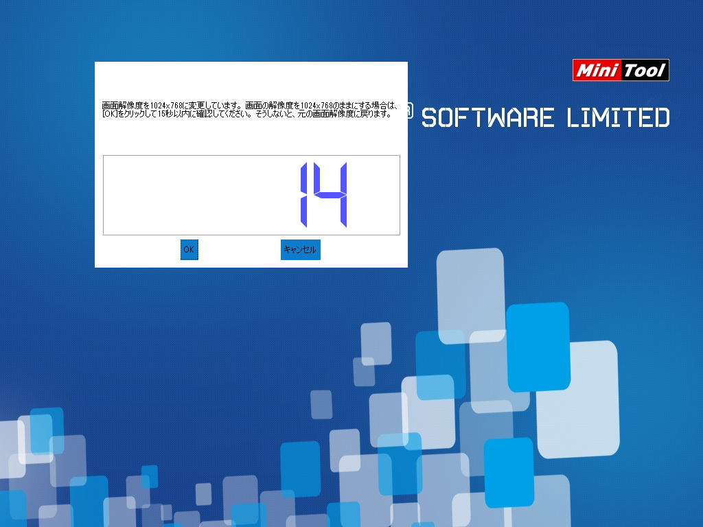 9.解像度を変更する旨のメッセージが表示されるので、[OK]ボタンを押します。