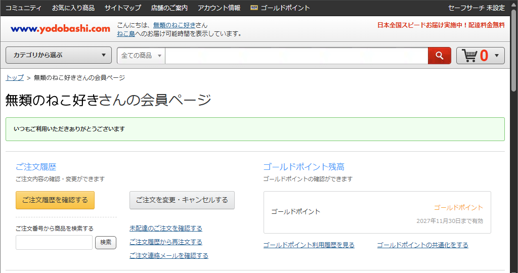 まずは、ヨドバシ.comで、マイページ(会員ページ)を開きます。